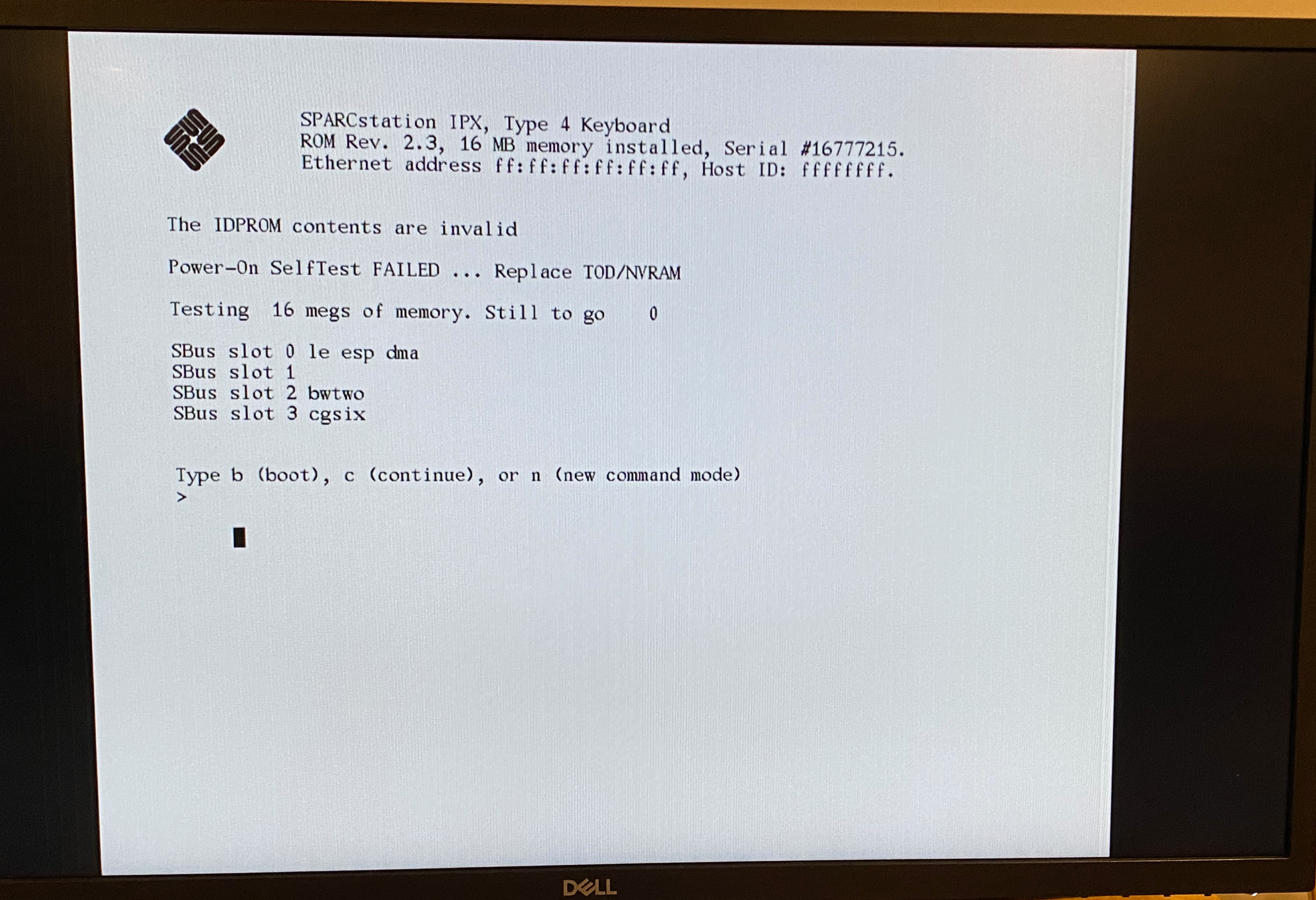 Sun SPARCstation IPX Sun MG1 Mono Frame Buffer 1600x1200 Sun boot screen Dell U2410 |